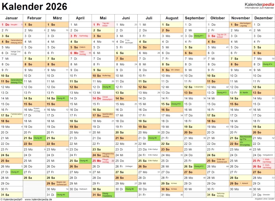 Übungskalender Feuerwehr - Gemeinde Mückeln